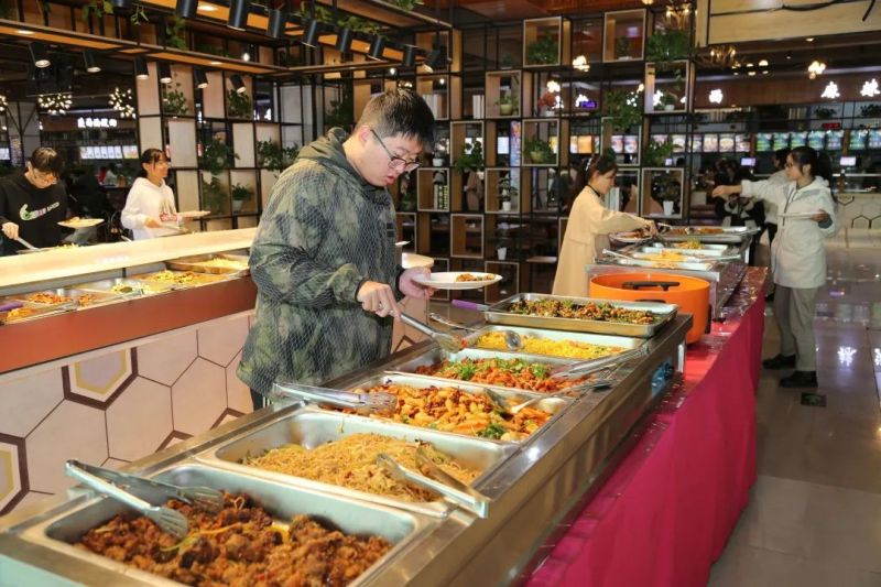 嘉園餐廳三樓位于河南科技大學(xué)開元校區(qū),南鄰關(guān)林路,北鄰開元大道,東臨學(xué)府街,西接周山大道。東南緊鄰洛陽新區(qū)三院,東北緊靠體育公園,交通便利,周邊的服務(wù)設(shè)施配套齊全。校區(qū)歷史悠久,校內(nèi)綠樹成行,環(huán)境優(yōu)美,餐廳內(nèi)部裝修簡(jiǎn)單時(shí)尚,空調(diào)暖氣等基礎(chǔ)設(shè)施配備完善,功能區(qū)就餐區(qū)布局合理,食堂面積3800m2 ,整層餐廳功能性布局合理而豐富,東南角為餐廳自選餐區(qū)域,西北角為雅座休閑區(qū)域,中間為大廳就餐區(qū),南面電梯位置布置有高凳高椅的茶吧休閑區(qū),西側(cè)還有自動(dòng)升降電梯。餐廳內(nèi)部布置有多彩燈光,各個(gè)功能區(qū)還布置有書架和放置綠植的雅格 ,環(huán)境優(yōu)雅而舒適,共設(shè)置窗口數(shù)量35個(gè),餐桌200余張,分別經(jīng)營(yíng)漢堡、麻辣香鍋、陶香雞、無名包子、麻辣燙、蓋澆飯等眾多特色小吃,備受學(xué)生喜愛。