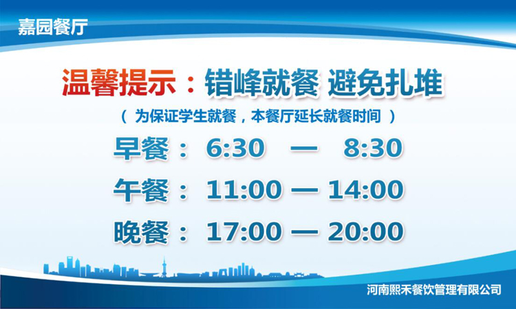 河南熙禾餐飲管理有限公司開展“三全育人”進(jìn)食堂活動,重點(diǎn)在于培養(yǎng)食品安全意識、節(jié)約糧食意識和營養(yǎng)健康意識。在食堂日常管理工作中,始終堅持“ 管理育人、服務(wù)育人、環(huán)境育人”的宗旨,按照《食品安全法》、《食品安全操作條例》等規(guī)章制度,不斷提高食堂管理工作和服務(wù)水平,逐步形成管理規(guī)范化、工作標(biāo)準(zhǔn)化、服務(wù)人性化,通過近幾年的特別是新食堂投入使用以來的不斷努力,給在校師生創(chuàng)造了安全、舒適、文明的就餐環(huán)境和就餐體驗。